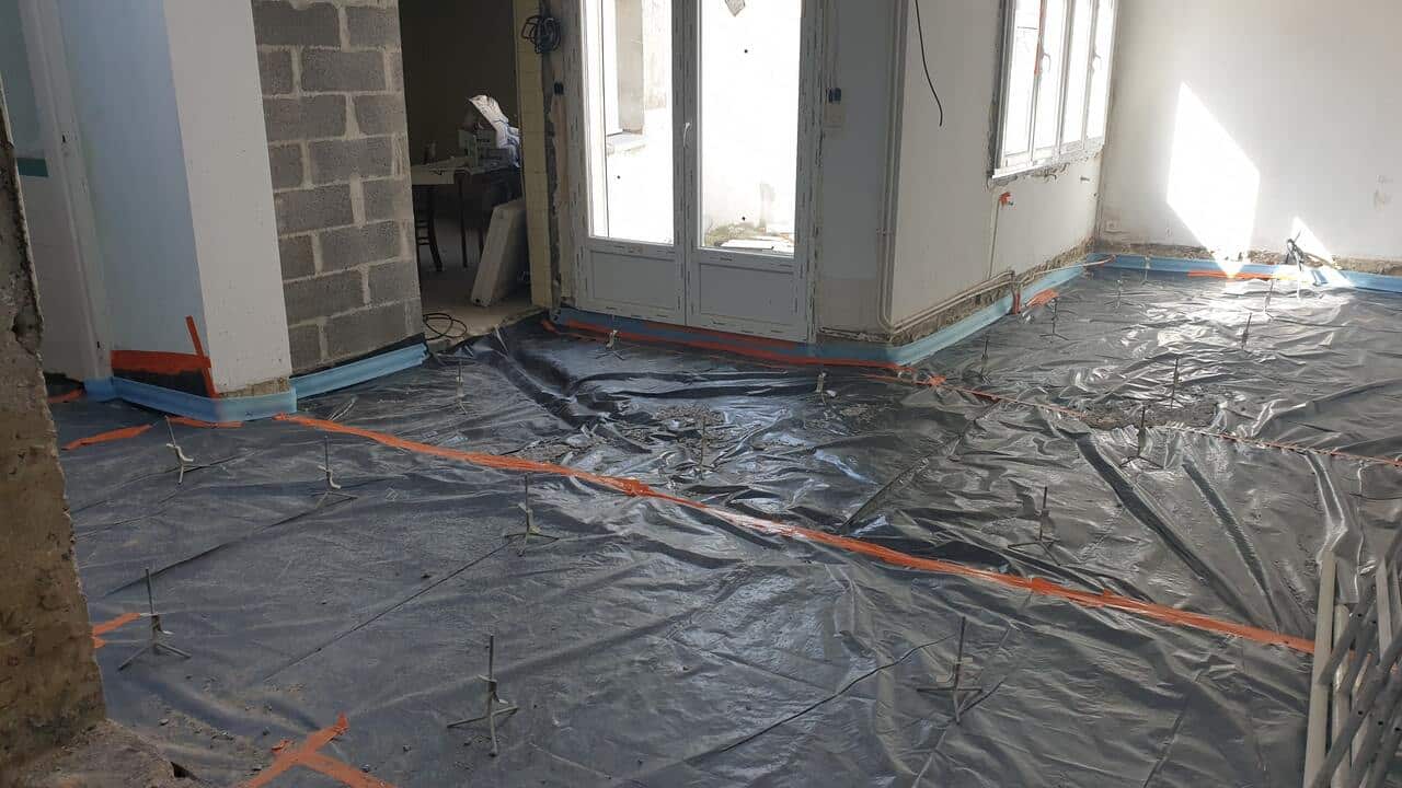 - Création de la chambre d'ami (raccordement des évacuations au réseau, dalle isolée, installation de toiture isolée, création d'ouverture, électrification)