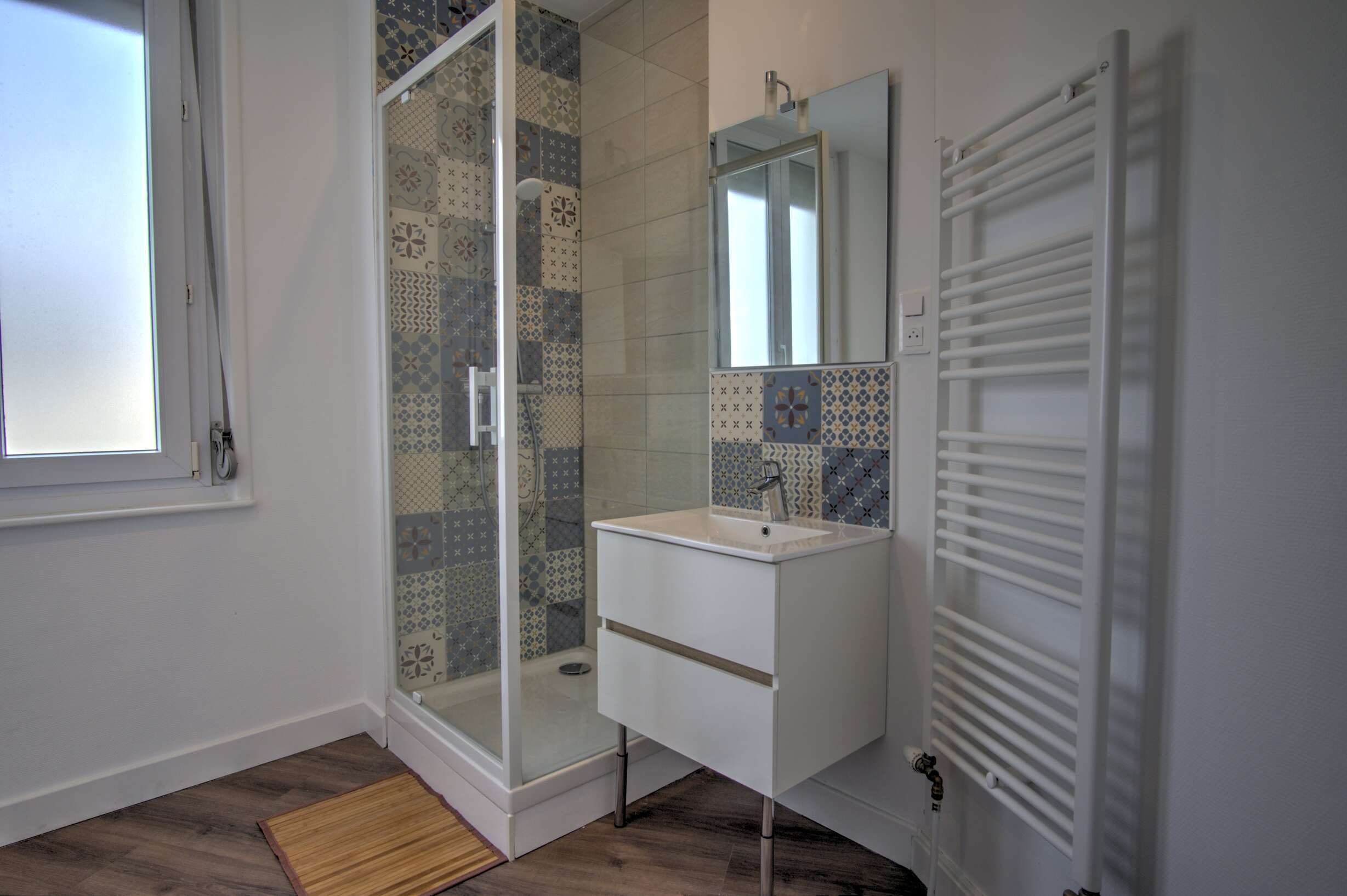 - pour les SDB, pose de sols lame PVC, sur natte désolidarisante pour s’adapter au plancher bois d’origine