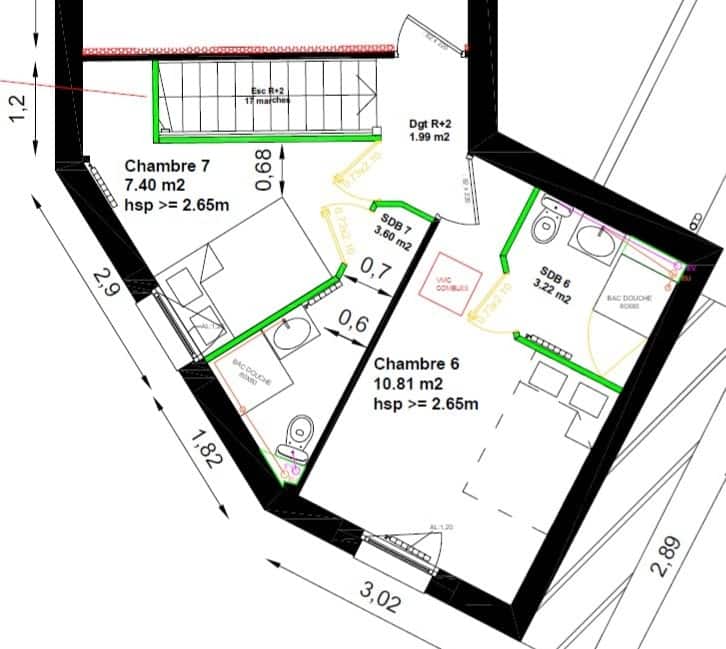 - création de réseaux electricité et plomberie pour les chambres à créer et leurs SDB respectives
